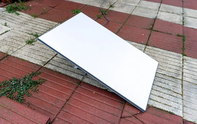 Hay distintos kits de Starlink, yo tengo el estándar. Es una antena rectangular no demasiado grande, tampoco muy pesada. Se conecta al router de Starlink con una especie de cable Ethernet. Muy largo. Y, una vez alimentados los dispositivos con electricidad, la antena se conecta automáticamente y descarga en minutos todo lo que necesita para funcionar.