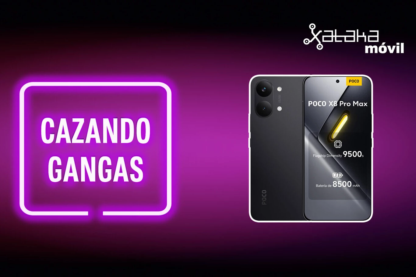 - Xiaomi Poco X8 Pro Max. POCO le ha metido una batería de 8.500 mAh a un móvil con el Dimensity 9500s de 3 nanómetros y lo ha dejado en 469 euros en Amazon. El Poco X8 Pro Max monta una pantalla AMOLED 1.5K de 6,83 pulgadas con 3.500 nits de brillo pico, carga rápida de 100 W y carga inversa de 27 W para usar el teléfono como powerbank.