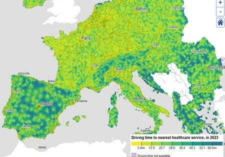 Los mapas de Eurostat muestran la cercanía a centros de educación o salud en Europa, como factor de accesibilidad