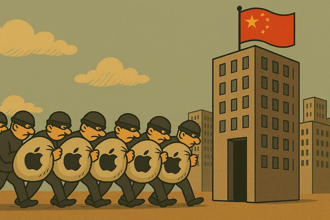 Un edificio donde se arremolinan teléfonos de Apple