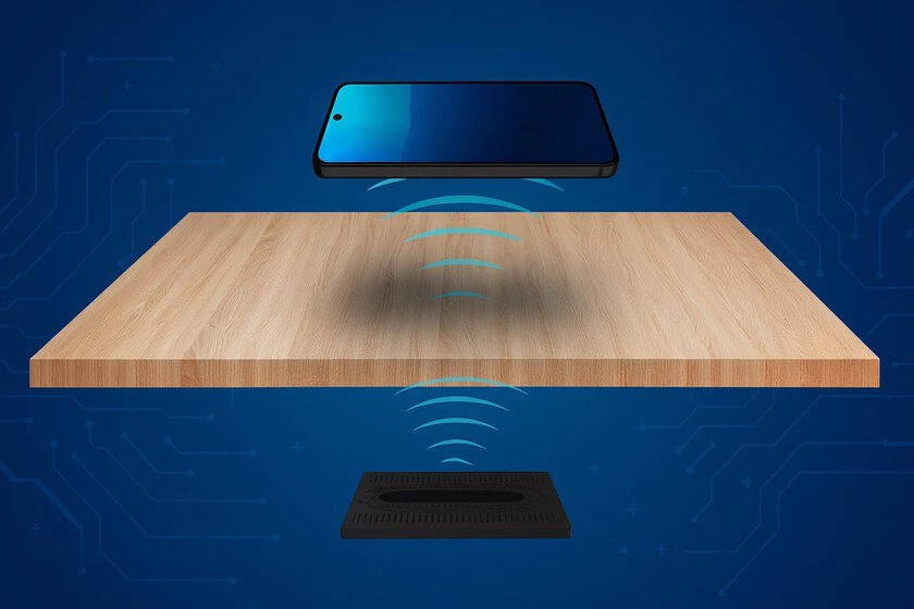 La tecnología sigue siendo carga inductiva: una bobina en el cargador genera un campo magnético que se acopla con la bobina del móvil y la convierte en energía. La diferencia es que aquí todo sucede “a través” de la mesa, sin que se vea el dispositivo.