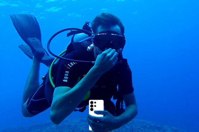 Luego sólo nos queda bloquear el sujeto que queramos grabar o fotografiar (manteniendo pulsado el enfoque sobre él) y usar el botón de volumen como disparador, ya que las pantallas táctiles no suelen funcionar correctamente bajo el agua, lo que nos va a dificultar la tarea.