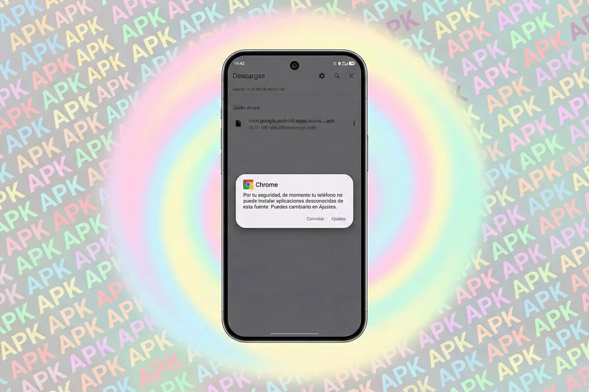 - Pulsa sobre el archivo descargado: Android te dirá que la instalación está bloqueada. Dale a aceptar e irás hasta la autorización de orígenes desconocidos.