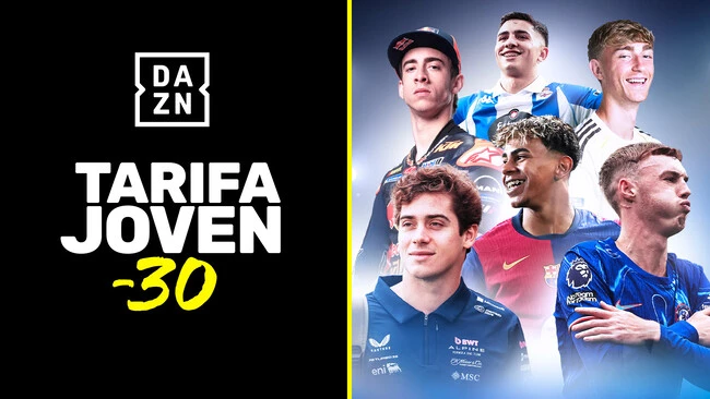 DAZN tiene una nueva opción más asequible para los aficionados entre 18 y 30 años. Es la Tarifa Joven -30 y permite disfrutar de un 30% de descuento en cualquiera de los planes que ofrece la plataforma: fútbol, motor y premium.