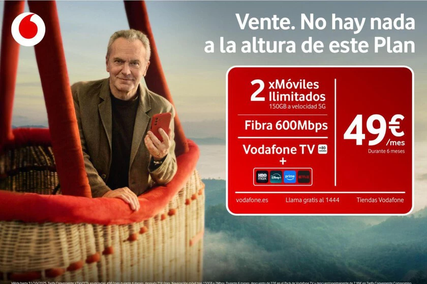 Vodafone estrena tarifas que incluyen fibra, dos líneas móviles, televisión y mucho streaming con descuentos durante los seis primeros meses para los nuevos clientes. El plan más completo incluye suscripción a HBO Max, Disney+, Prime Video y Netflix, pero también se pueden configurar otros combinados con menos suscripciones y algo más baratos. Las opciones más completas cuentan con: